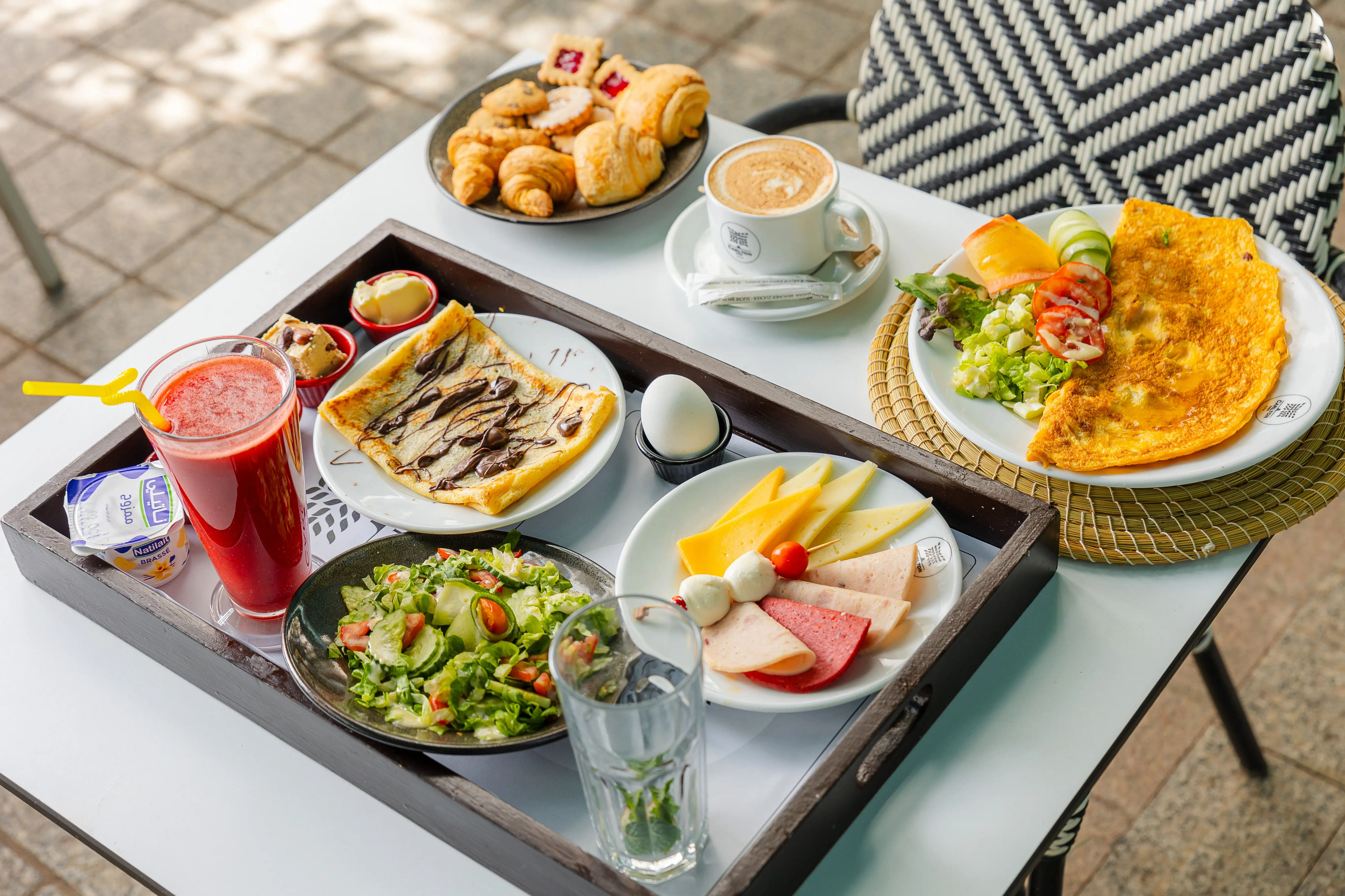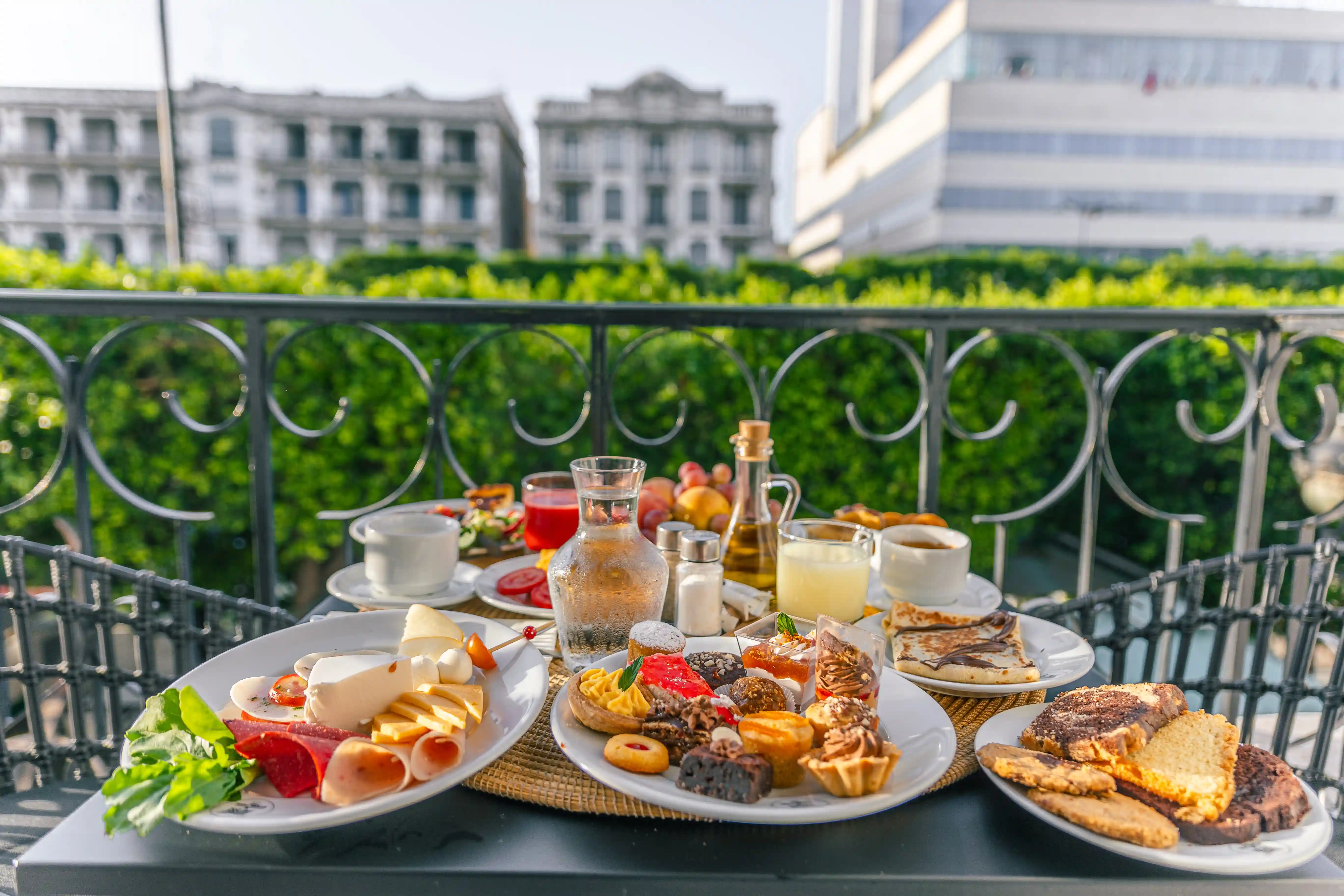 Commencez la journée avec nos petits-déjeuners variés : un buffet gourmand avec viennoiseries, fruits, plats chauds et froids, ou des formules à savourer sur la terrasse face à l’avenue Habib Bourguiba. Ouvert à tous, sans réservation.